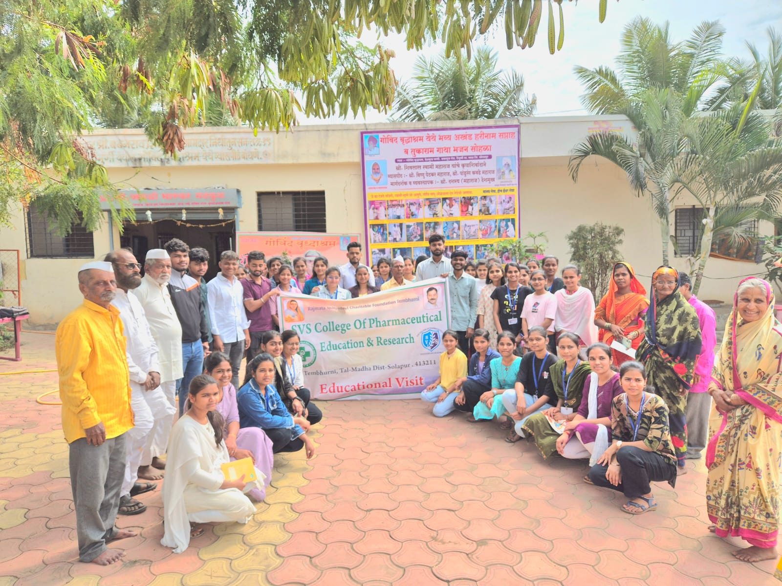 डॉ. भगवंत पवार यांचे दैदीप्यमान यश विद्यार्थ्यांसाठी प्रेरणादायी— डॉ. विठ्ठल लहाने संत आईपेक्षाही श्रेष्ठ; अंधश्रद्धा दूर करणारे संत रविदास महाराजांचे विचार प्रेरणादायी… युवा कीर्तनकार ॲड. कु. प्राची सरवदे* एस. व्ही. एस. कॉलेजची गोविंद वृद्धाश्रमाला सदिच्छा भेट; विद्यार्थ्यांतून सामाजिक भान जोपासले एस. व्ही. एस कॉलेज ऑफ फार्मास्युटिकल एज्युकेशन अँड रिसर्च, टेंभुर्णी यांची संजीवनी हॉस्पिटल इंदापूर ला शैक्षणिक भेट कन्हेरगाव येथे संत रोहिदास जयंती उत्साहात साजरी .